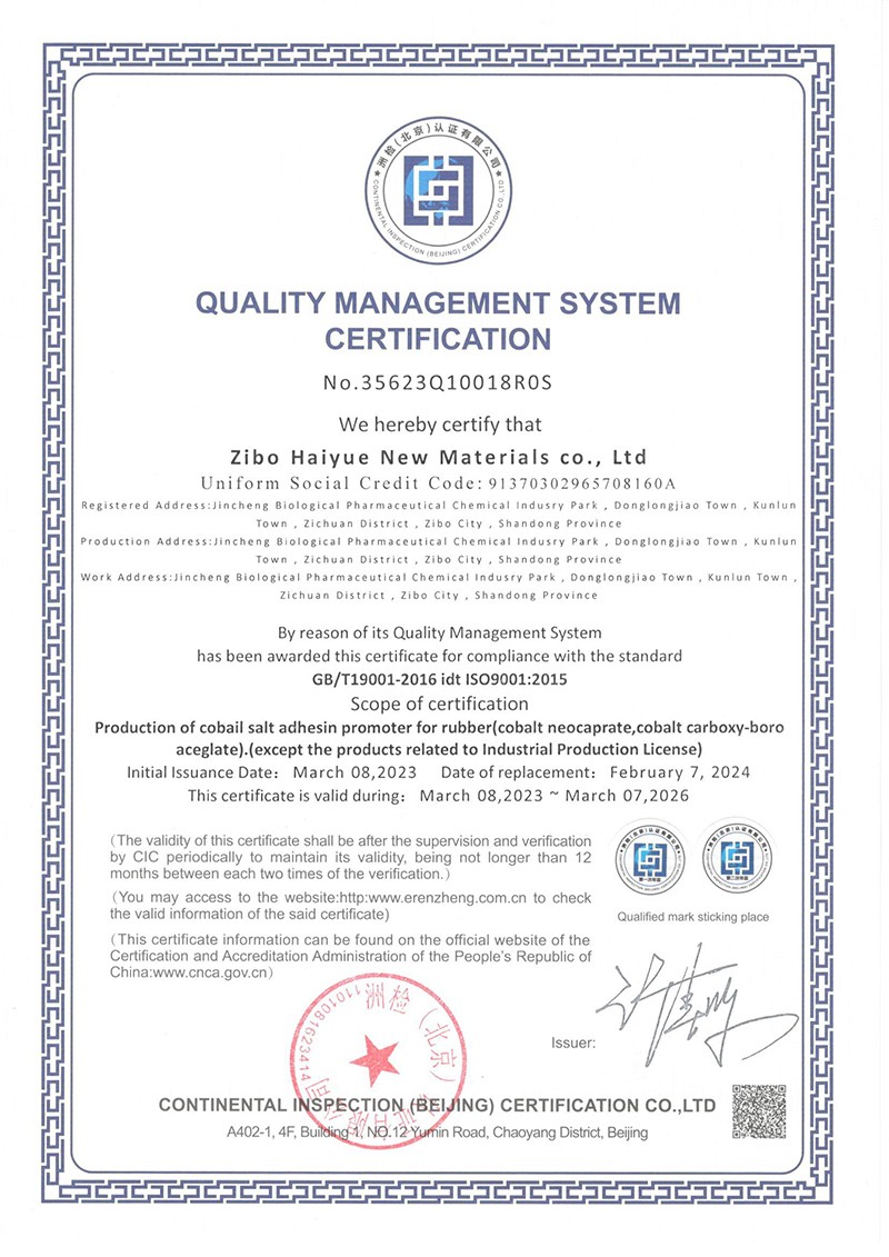 新癸酸鈷、硼酰化鈷、橡膠鈷鹽粘合劑找:淄博海岳新材料有限公司